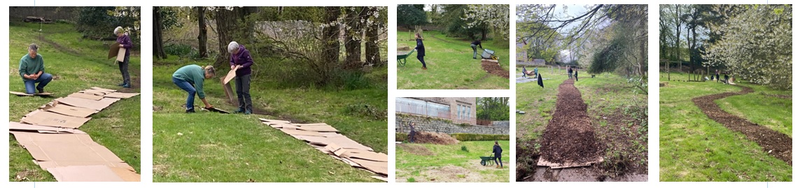 We have improved the pathways through the site by using recycled cardboard and wood chips supplied by local tree surgeons rather than energy-expensive concrete or slabbing wherever possible.